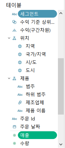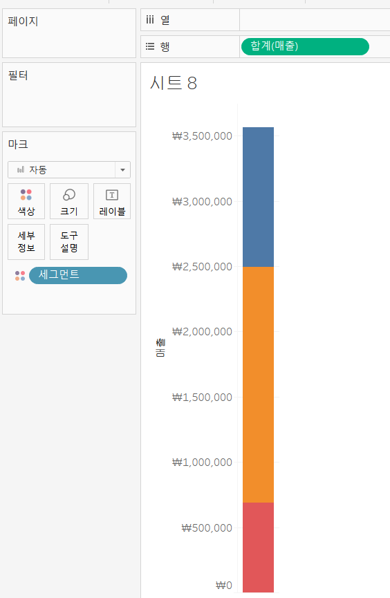 매출 합계의 비율을 세그먼트별로 나누어서 비율을 보기 위해 두가지 항목을 선택해줍니다