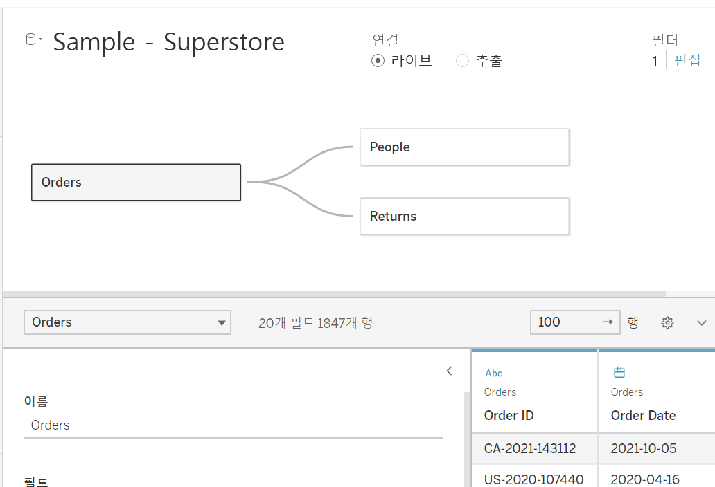해당 예시는 태블로에서 기본적으로 제공되는 sample-superstore 데이터로 진행됩니다.