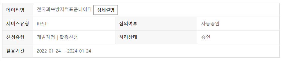 공공데이터 포털에서 공개되는 API는 대부분 바로 자동 승인이 이루어진다!