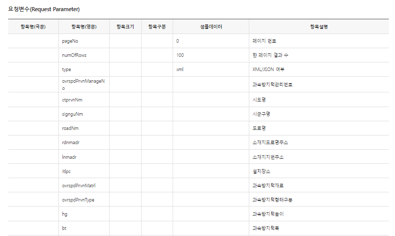 전국과속방지턱표준데이터에 존재하는 변수의 일부를 캡쳐해왔다