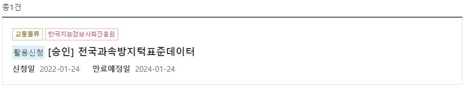 해당 미리보기의 가장 아래 totalcount를 통해 내가 활용하는 과속방지턱은 총 19519행을 가지고 있음을 확인할 수 있었다 :)
