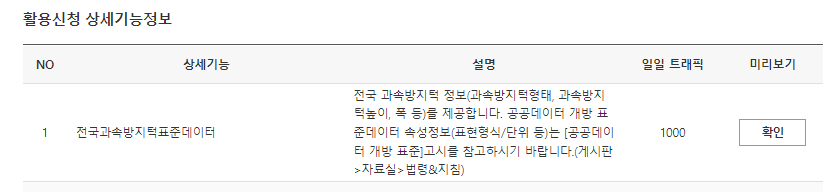 활용신청 상세기능정보의 미리보기를 통해서 해당 정보를 확인할 수 있다