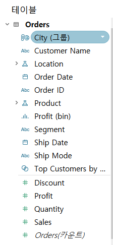 ※ 측정값은 기본적으로 합계로 나타나게 됨 ( 태블로 기본 설정 )