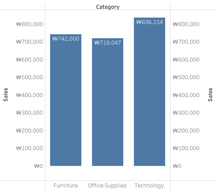 숫자 형식으로 된 레이블 중 원화로 표시하고 싶은 경우 변경방법에 대해 알아보도록 하겠습니다.